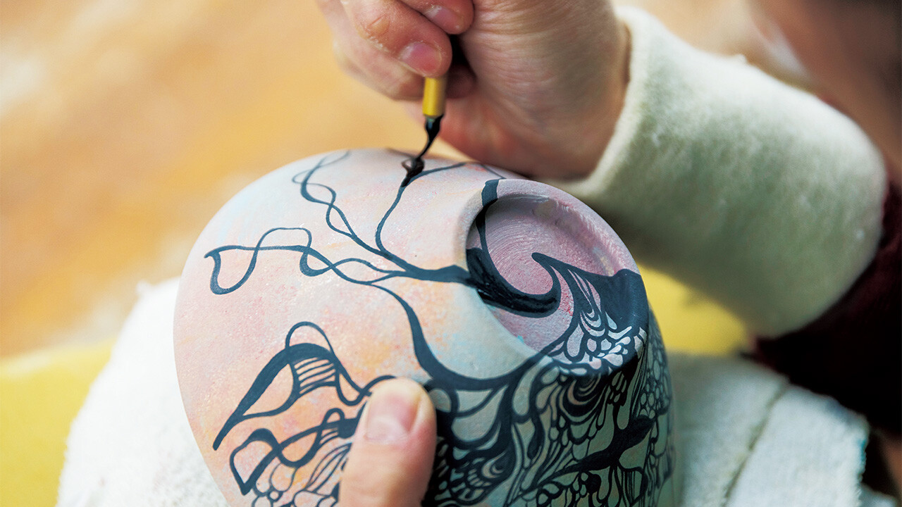 さまざまな成形技法を通じて粘土に慣れた後、絵付け、施釉などの装飾技法を習得し造形表現を学びます。