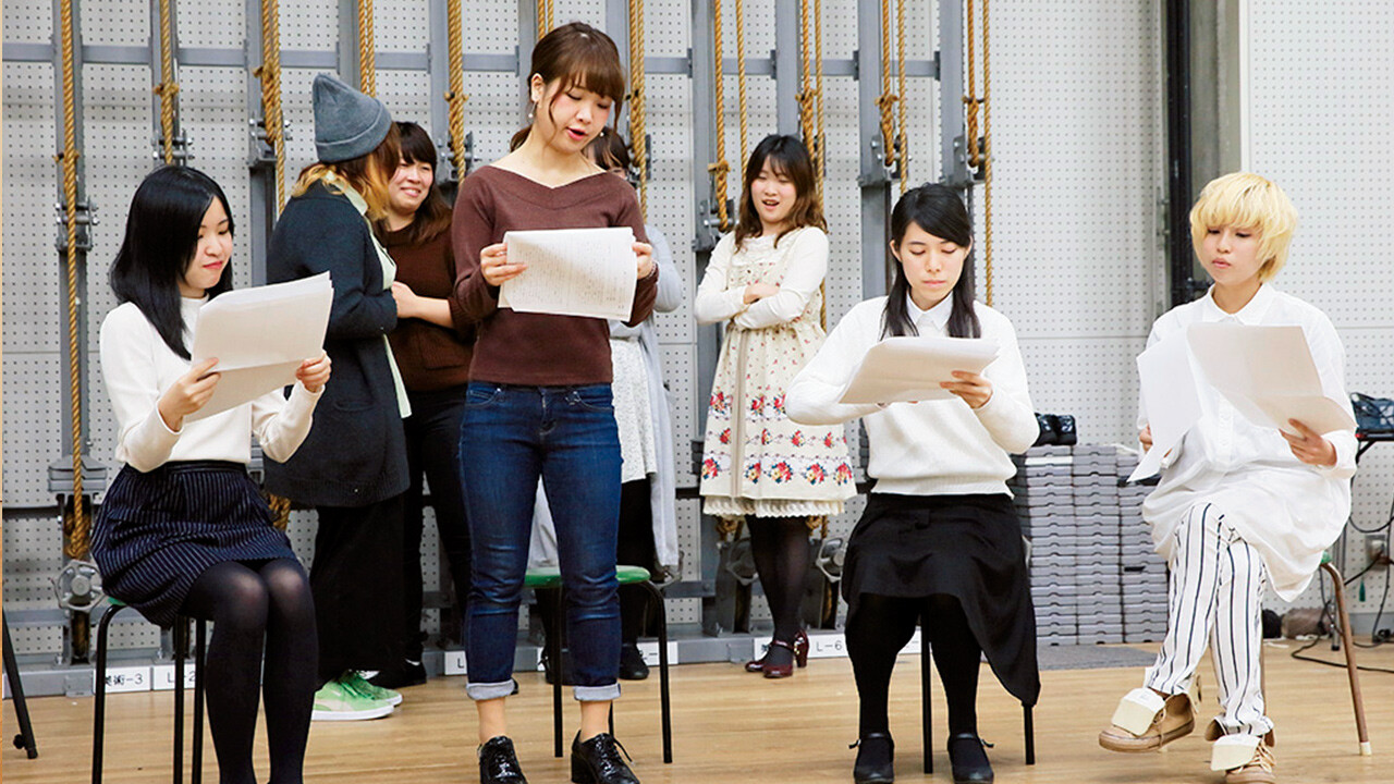 オペラやミュージカル、ストリートプレイといった舞台表現力を、座学と演習をとおして体得。エチュードや戯曲などを用いた台詞の読み合わせに取り組み、適切な表現を見いだす力、即興表現力を育てる。