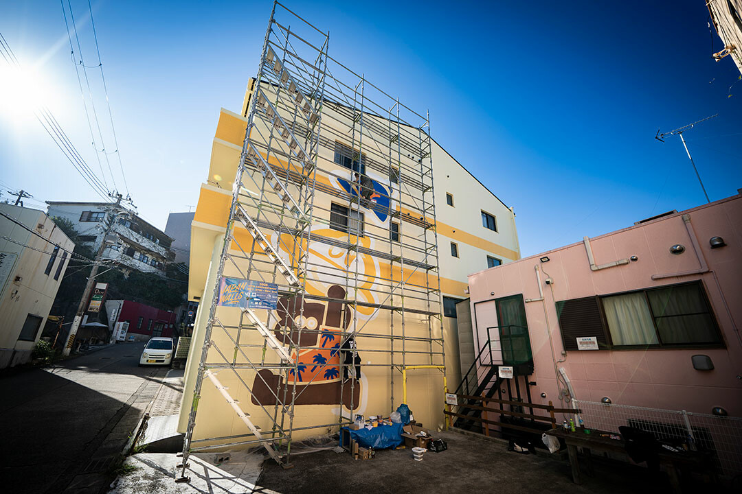 10月27日、白浜がカラフルに彩られていくJAPAN WALLSがスタート。白浜のあちこちでアーティストたちが壁面に様々なモチーフを描いていきます。
