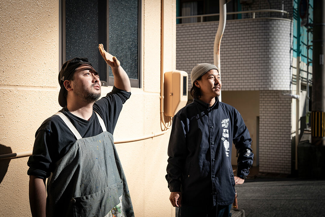 いつもはアトリエにこもって制作をすることが多い2人にとって、JAPAN WALLSのような壁画フェスは特別なひととき。1日の制作が終わったあとのアーティスト同士の交流も普段ない刺激になったそうです。
