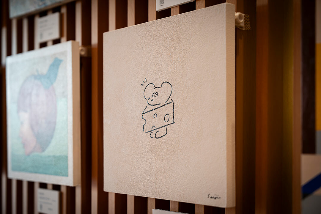 この名前は2人がかつて学んだ美術学科の校舎20号館に由来しています。今回の作品は誰が見ても2人がコラボした作品だとわかるように、2023年の松本さんの壁画「ねずみのANDY」と2024年に中山 誠弥さんが描いた「PonZ」が一緒に一つの壁面に共存する構成になりました。