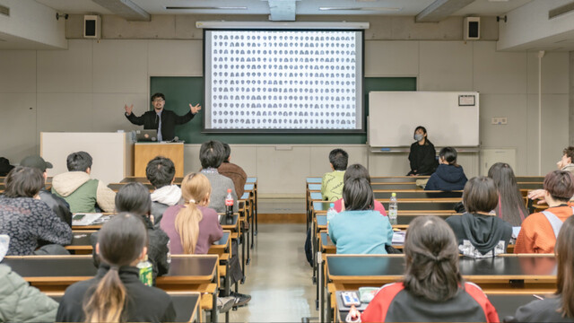 美術など主にファインアート系の学び舎となっている20号館の壁に美術学科の卒業生で、アーティストの松本セイジさんが巨大壁画を手掛けました。描かれたのは、「EVERYONE IS DIFFERENT」というメッセージとともに、絵筆を持ち、カメラを構え、楽器を演奏する楽しそうなねずみのANDYたち。様々な姿でアートに打ち込むANDYたちには、みんなが違うテーマを抱え、それぞれ異なる手法で表現していくことを肯定するイメージが表現されています。