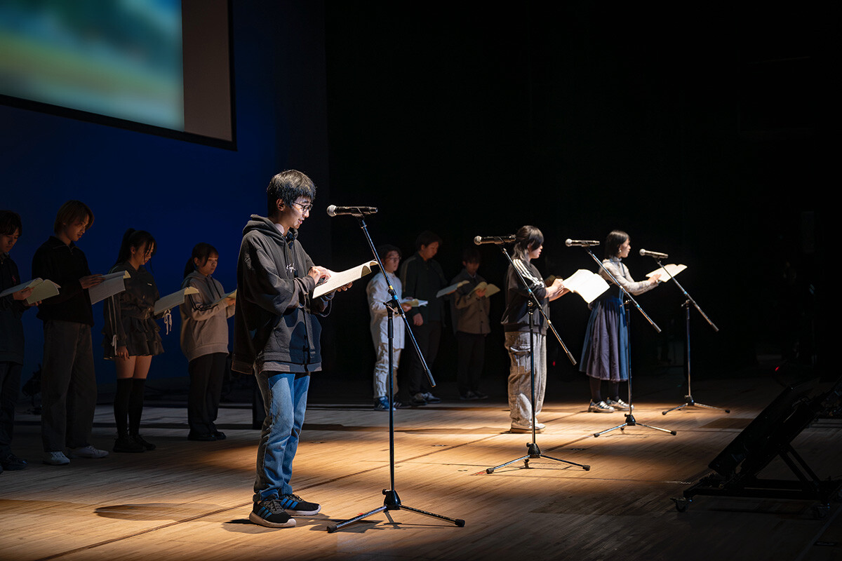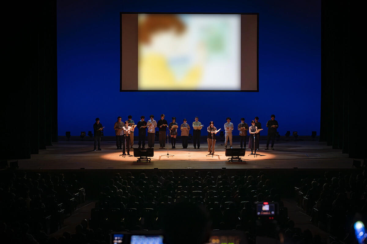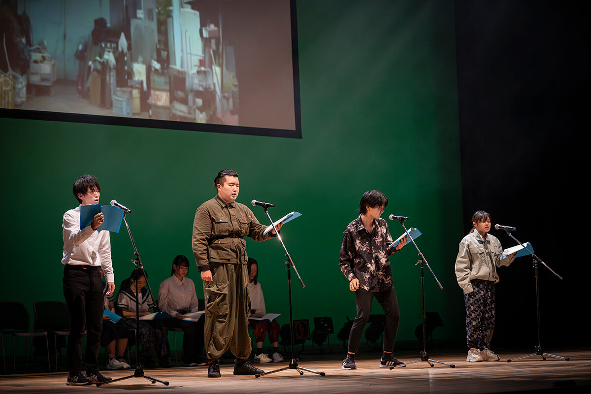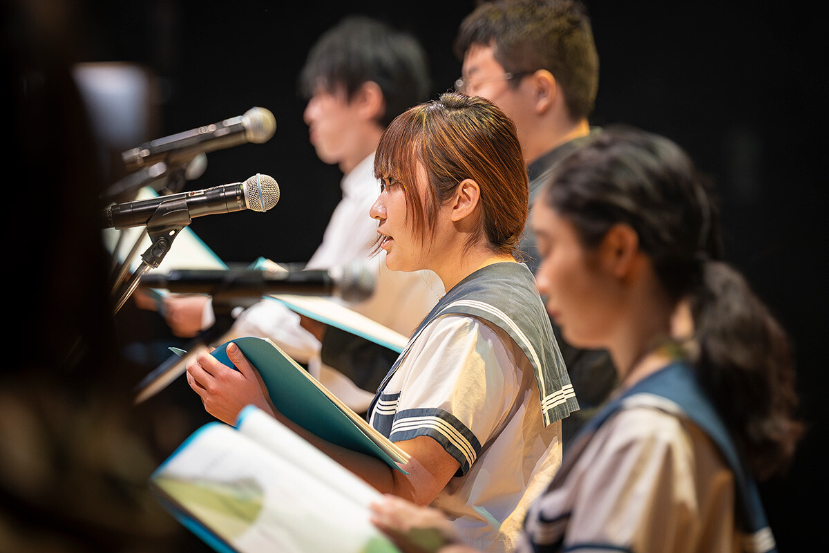 「声優フェスティバル」は、学生たちにとって在学中に一度しかない大舞台で、今回もみんなが朗読、歌、ダンスなど、全身を駆使したパフォーマンスに挑戦しています。これは声優コースの設立以来、「声優である前に俳優である」という教えにもとづいて実践しているもので、学生たちも見られることを意識することで自然と背筋が伸び、歩き方も変わって、練習前よりも格段に俳優らしさが出てきます。この公演でお客様の反応を直に感じると舞台への興味が高まる傾向があり、顔出しでの映画・ドラマ出演など、声優のマルチタレント化が進んでいる現状では、こういった取り組みが、ますます大切となっているように感じます。中には、「声だけの芝居を追求したい」という人もいて、それも否定はしませんが、せっかく総合芸術大学で4年間学ぶのだから充実した環境をフルにいかし、自分を磨いてもらえたらと思います。