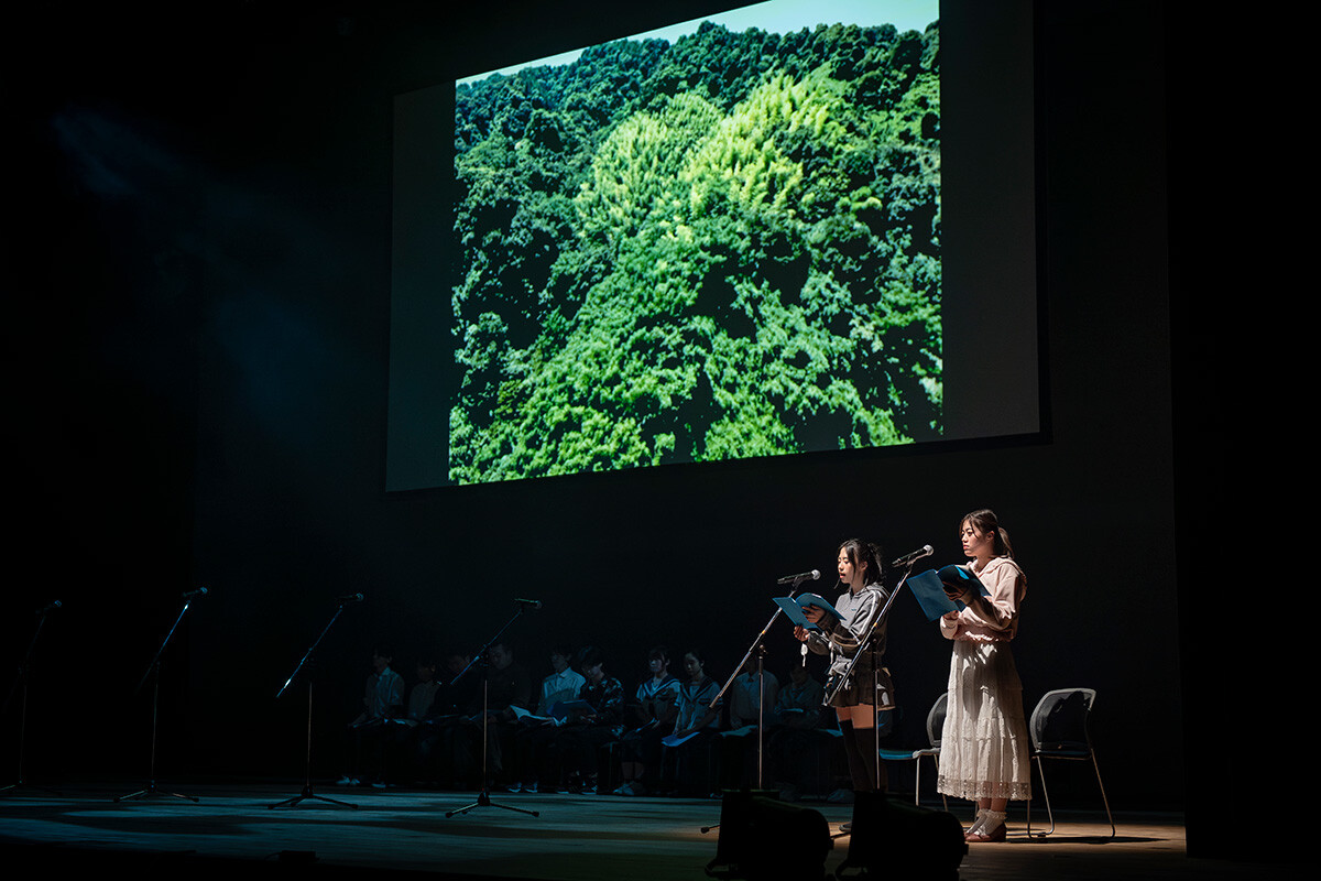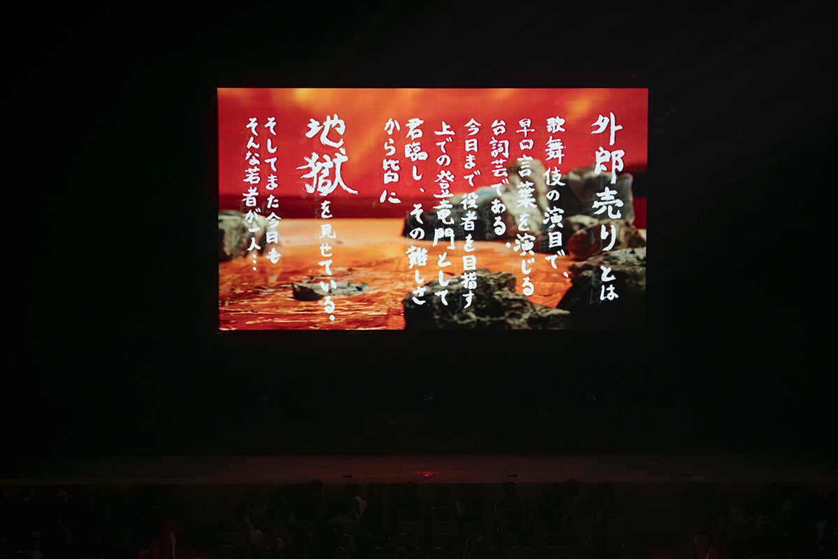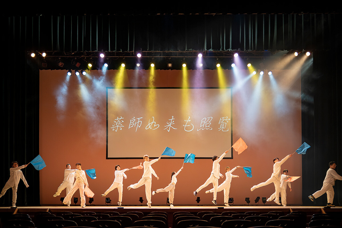 映像学科制作によるオープニング映像は、パフォーマンスの導入として舞台手前の紗幕に投影されました。