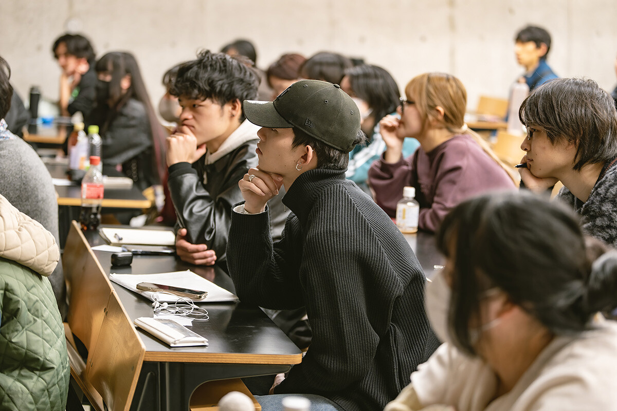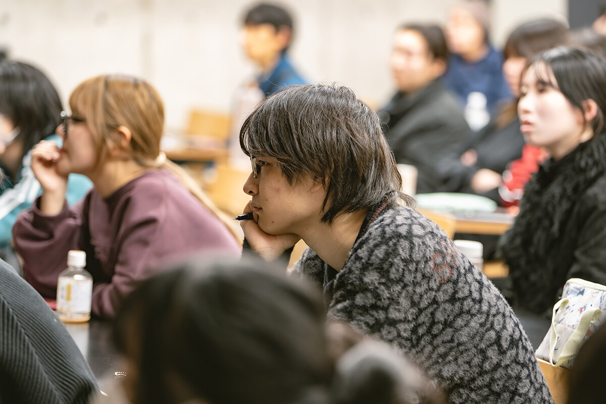 今回の講義を終えて、正直に言うと「ああしたかった、こうしたかった」という反省はあります。ただ、学生の皆さんのコメントを読んで、感じたことをそのままストレートに言葉にしてくれていたと感じました。言葉にするということは、成長の過程でいつの間にか難しくなってしまうものだと思っていましたが、ほぼ全員がそれをやってくれました。本当にすごいことだと思います。講義中に紙を配って問いを投げかけたのは、答えを出すことよりも、「答えのない問い」を残したかったからです。伝えることは、考えることだと思っています。今日考えた答えが、別のタイミングでは変わるかもしれない。そういう問いを持ち続けてほしいという思いがありました。学生の皆さんには、「自分と世界」「自分と社会のつながり」を広く見てほしいと思っています。そして、自分の考えや感情が“本当であること”を大切にしてほしい。大阪芸術大学は学科の幅が広く、多くの人と出会える場所です。その環境を生かしながら、内側から生まれた“本当”を追求した作品を作ってほしいと思います。