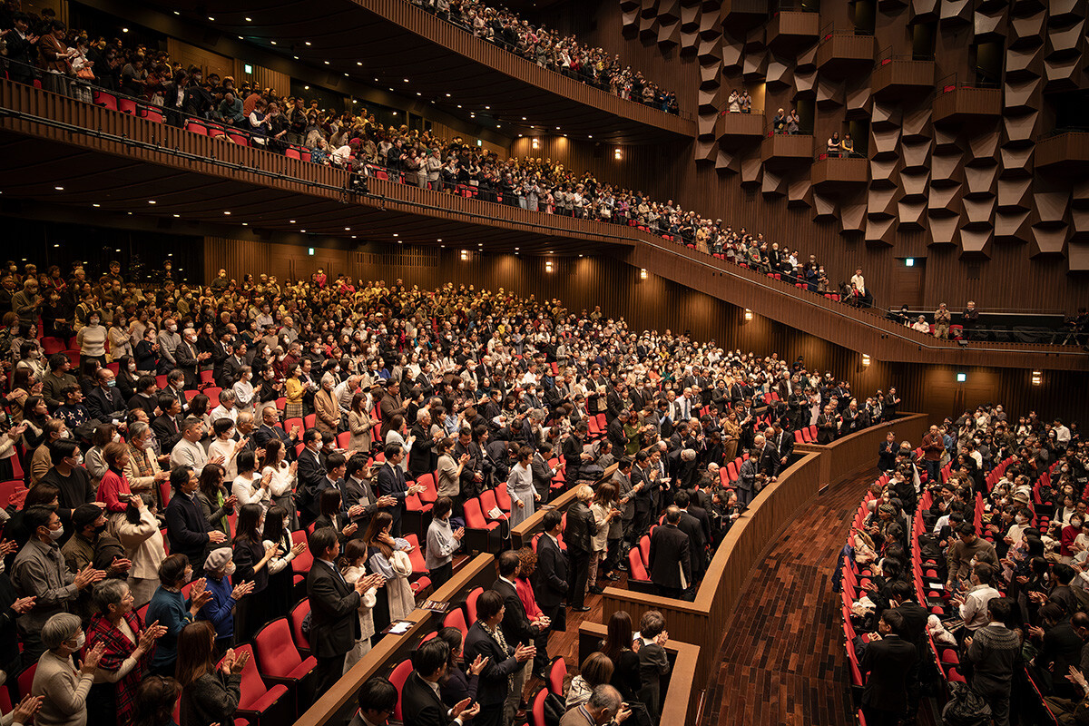 続いて演奏されたのは、年末の風物詩としても知られる「交響曲第9番 ニ短調 作品125『合唱付き』」です。ベートーヴェンの最晩年の傑作で、聴覚障害など様々な難病に苦しみながらも宗教的精神性を追究した作品と言われています。137名もの大阪芸術大学混声合唱団が入場してスタンバイ。大友先生のタクトのもと厳粛で力強い第1楽章から始まり、第2楽章では疾走感に満ちたスケルツォ、第3楽章は美しい旋律がアダージョを織りなし、感動を深めていきました。