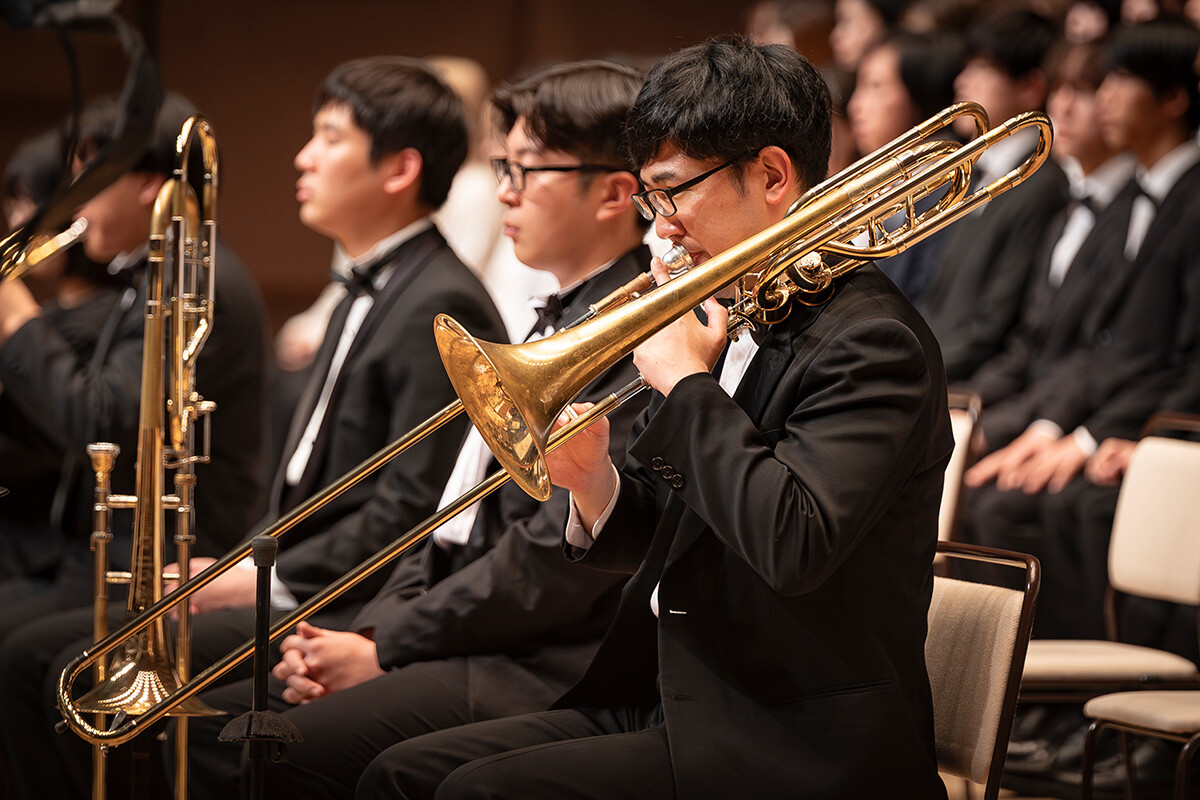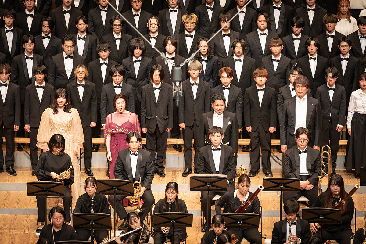 「第九」は特別演奏会で4年に一度演奏される伝統があり、学生たちは在学中に必ずこの名曲を体験します。壮大な合唱付き交響曲を一流ホールで演奏することで、音楽に対する理解や意識も格段に向上。学生たちは、半年以上の練習の成果を本番で存分に披露し、次につながる確かな一歩を刻みました。