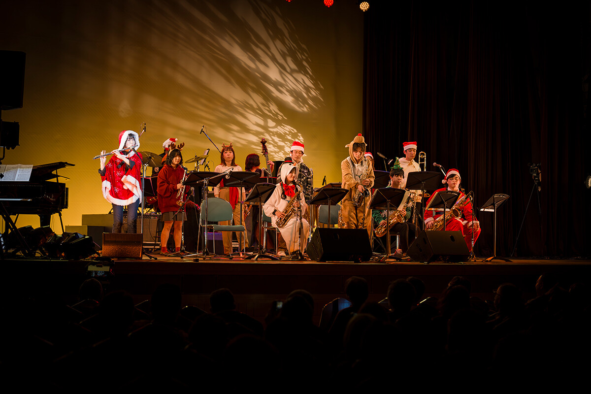 本番の演奏だけではなく、会場内で流れるオープニング曲、休憩BGM、エンディング曲も学生たちが制作。また、クリスマスシーズンに合わせてサンタクロースやトナカイの姿で演奏するバンドも登場するなど、衣装面でも学生たちが個性を発揮。日頃の学びはもちろん、自分らしさや感性も生かしたステージングの数々を見ることができ、学生たちの今後の活躍を期待せずにはいられない「クリスマス・ポップス・コンサート」になりました。
