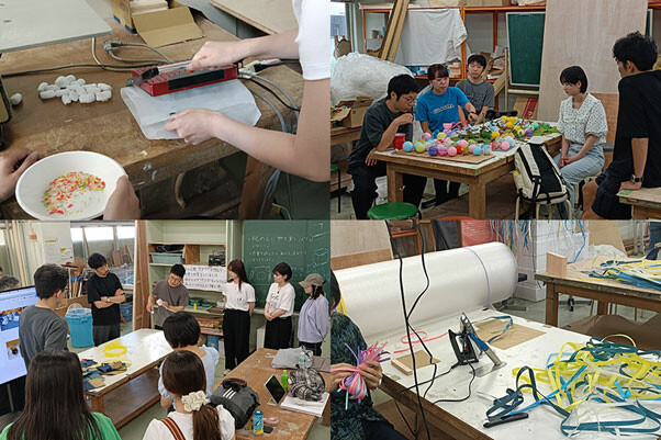 高島屋が10/1〜10/28に開催するツナグアクションで大阪店のイベントとして、デザイン学科プロダクトデザインコースの4年生が作品制作を行いました。コンテンポラリーデザインスタジオwe+監修のもと、高島屋大阪店内で廃棄される段ボールや緩衝材などを新たな価値を持った「素材」にしています。成果物は1階の正面玄関ステージ、4階のローズパティオに展示しています。