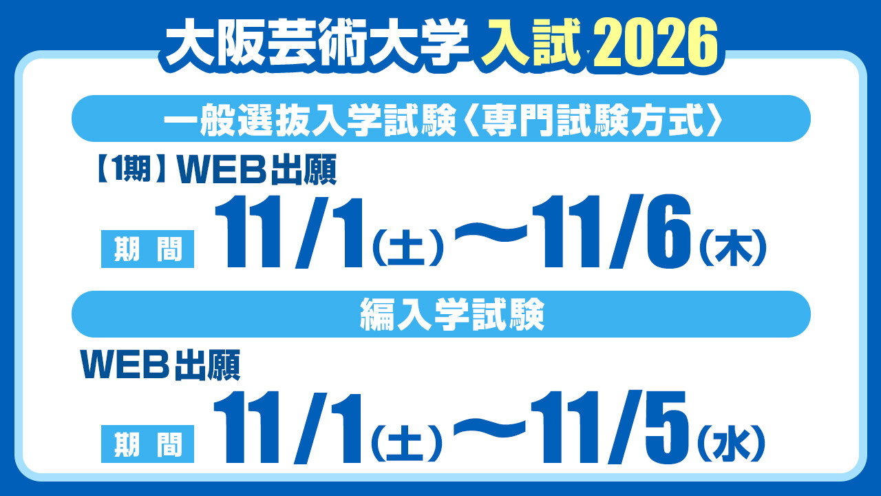 ※大阪芸術大学で9月14日・15日に行われる全学科の総合型選抜入学試験(1期)との併用は
