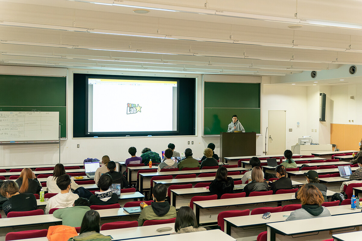 「自然そのものが自然のままアートになる」というプロジェクトを実践している、精鋭のアート集団チームラボのメンバーによる授業は、学生たちにとって貴重な経験となりました。