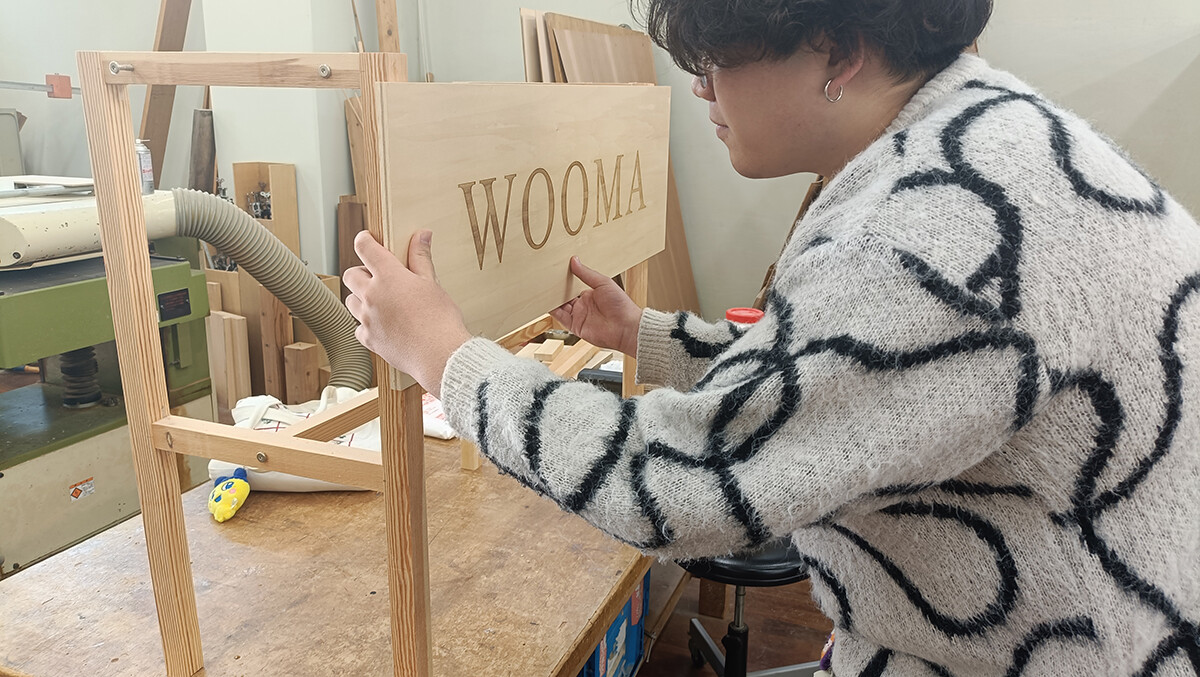 ステージで使用するテーブルも学生が制作