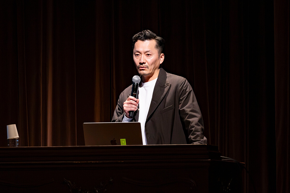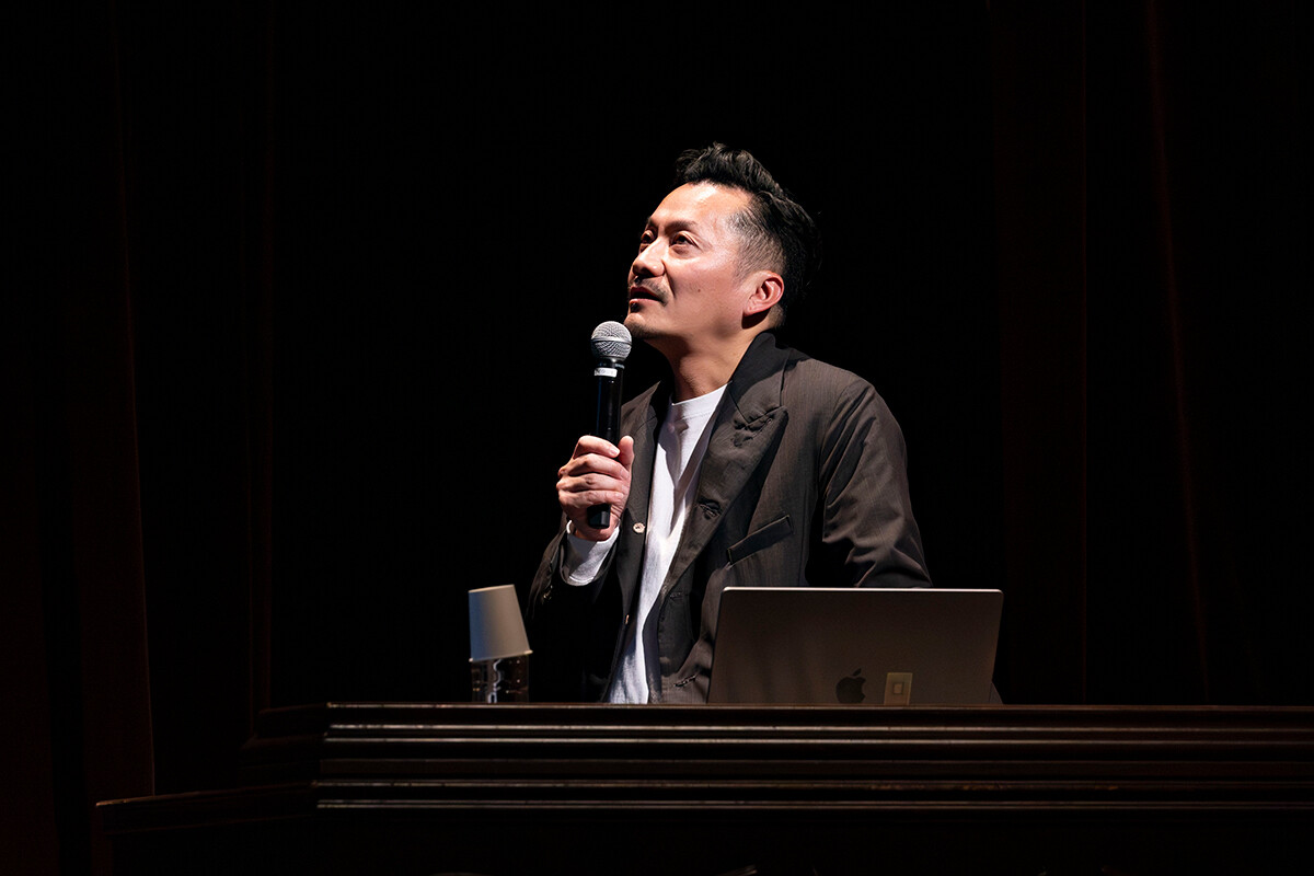 次に登壇したのは、サカナクションやPerfumeをはじめ数々のアーティストのMVを演出する映像ディレクター・田中裕介さんです。ユニークな発想と遊び心のある世界観を強みに、国内外で高い評価を受ける作品を生み出しているクリエイターです。今回の講演は「公式解剖」と題し、MVがどのように企画され、形になっていくのかを具体的に解説しながら進行しました。