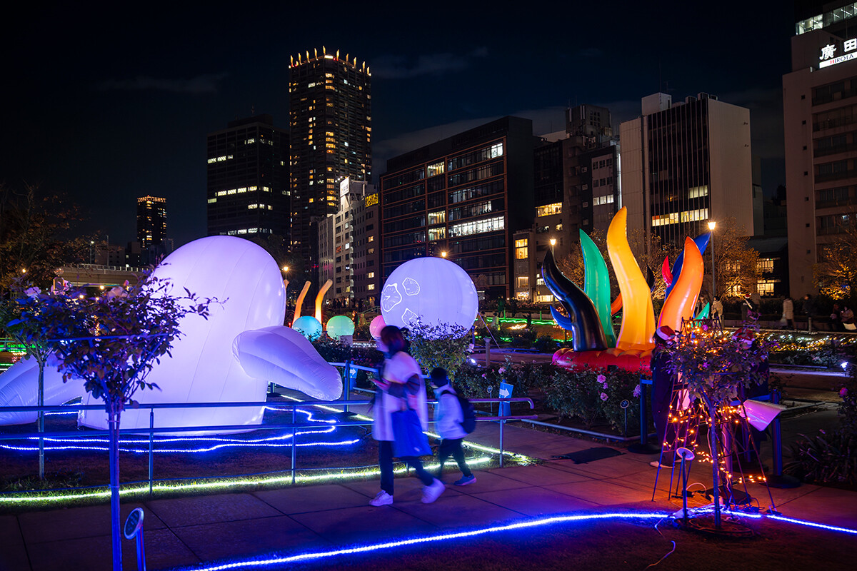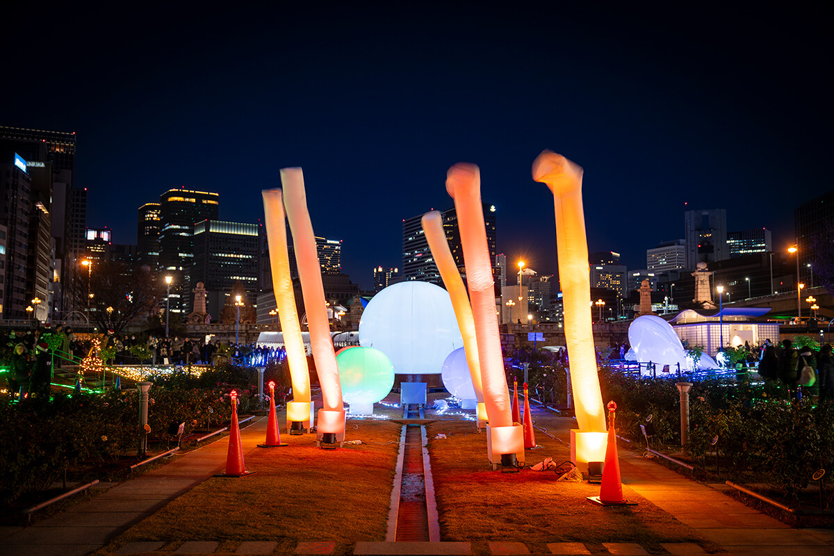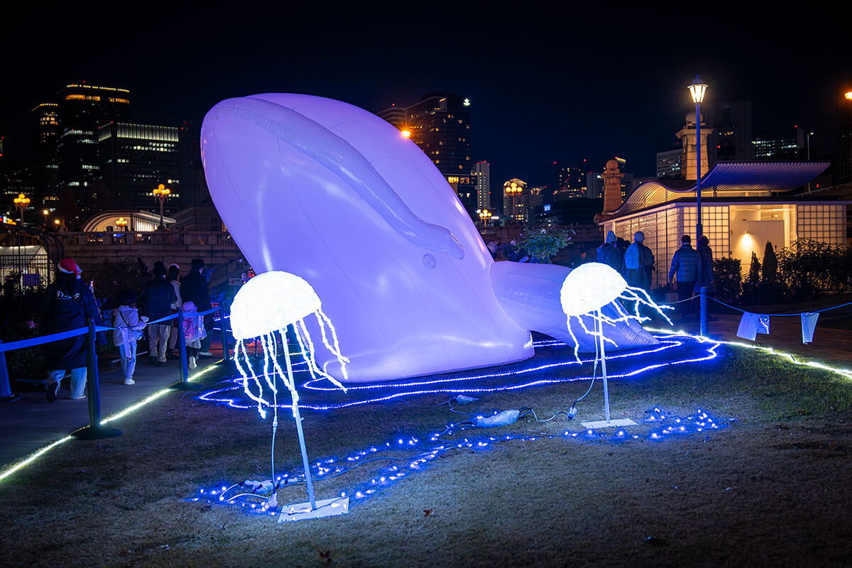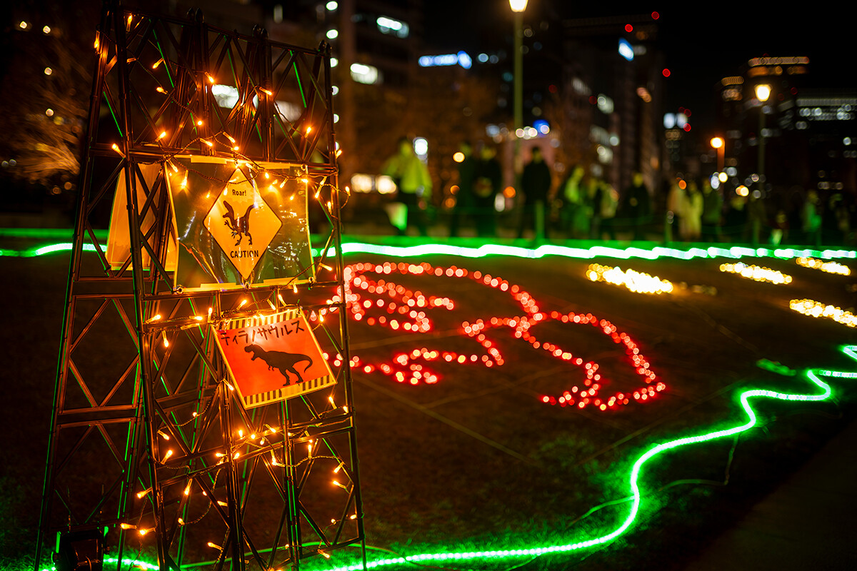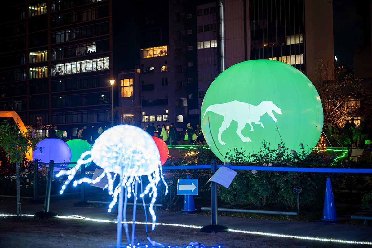 「DINO☆FANTASIA」の元になったのは、学内コンペティションで選考を勝ち抜いた学生のアイデアです。中之島は約2億5000万年前から6600万年前の中生代、恐竜が生息していた地域として知られ、化石も発掘されています。そこに着目し、ディノサウルスが生きる世界に迷い込んだような演出が散りばめられています。
