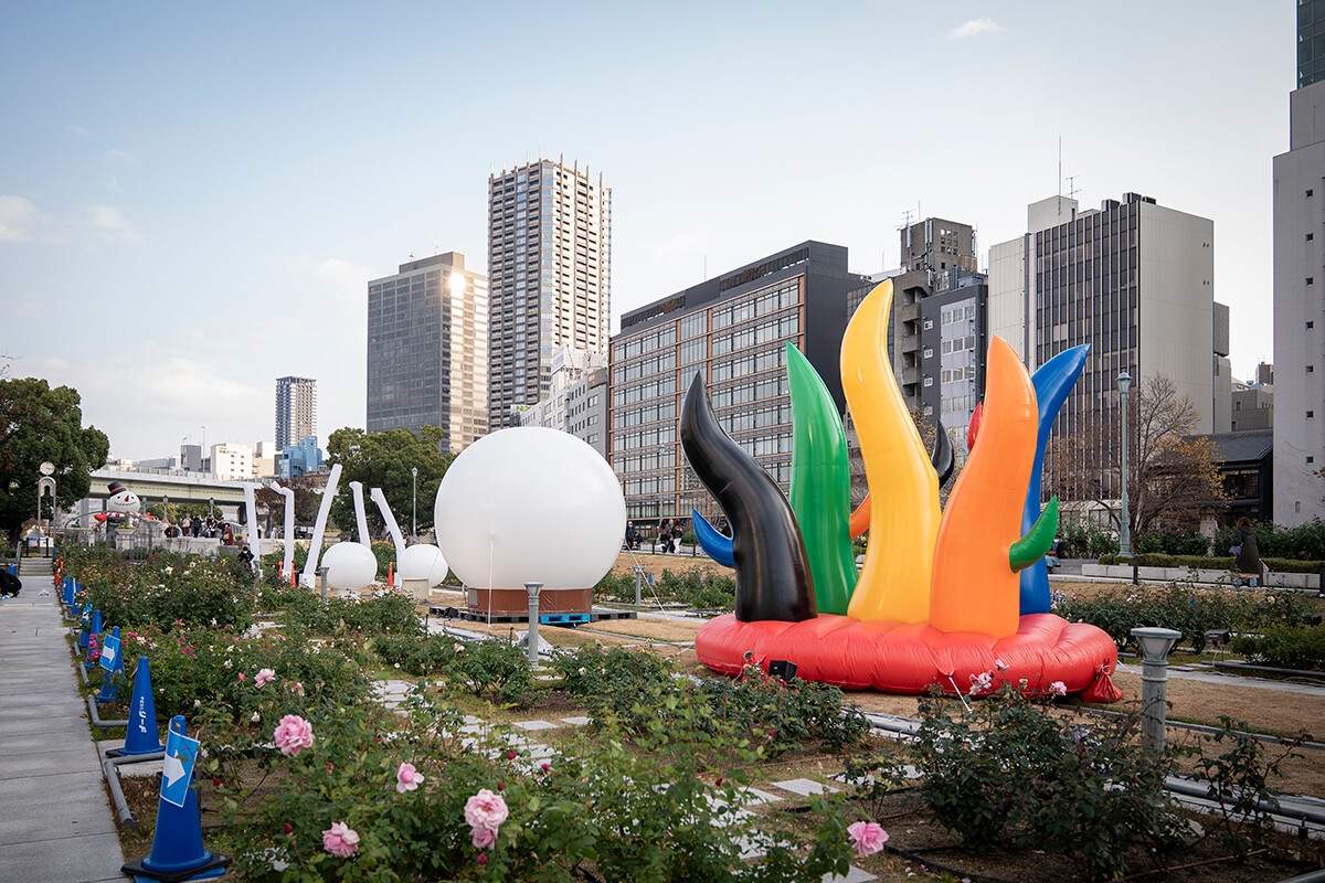 芸術計画学科では毎年、バラ園で展示プログラムを実施しています。今回は「DINO☆FANTASIA~中之島・記憶の発掘~」と題したプログラムを発案し、来場者の心を躍らせました。