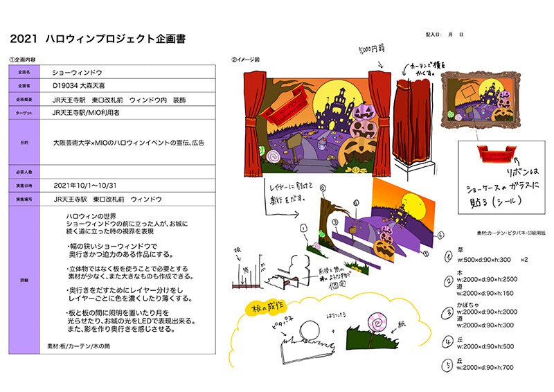 また、天王寺ミオのハロウィンをより賑やかにしたいと思い、制作時にも創意工夫を凝らしながら学生たちの手で作り上げました。