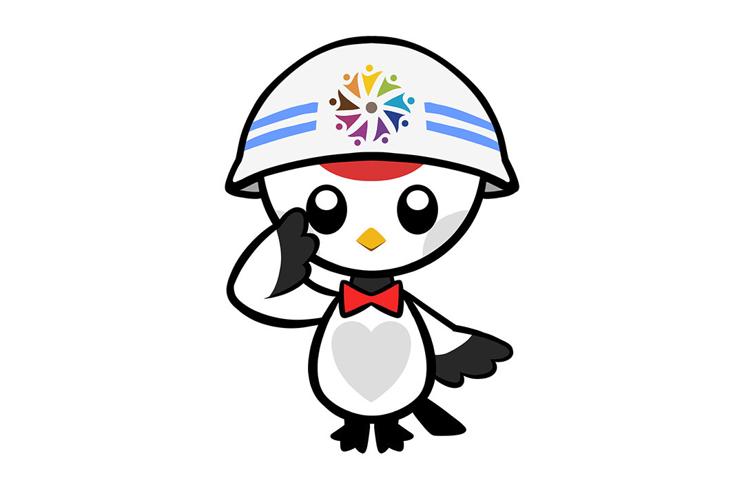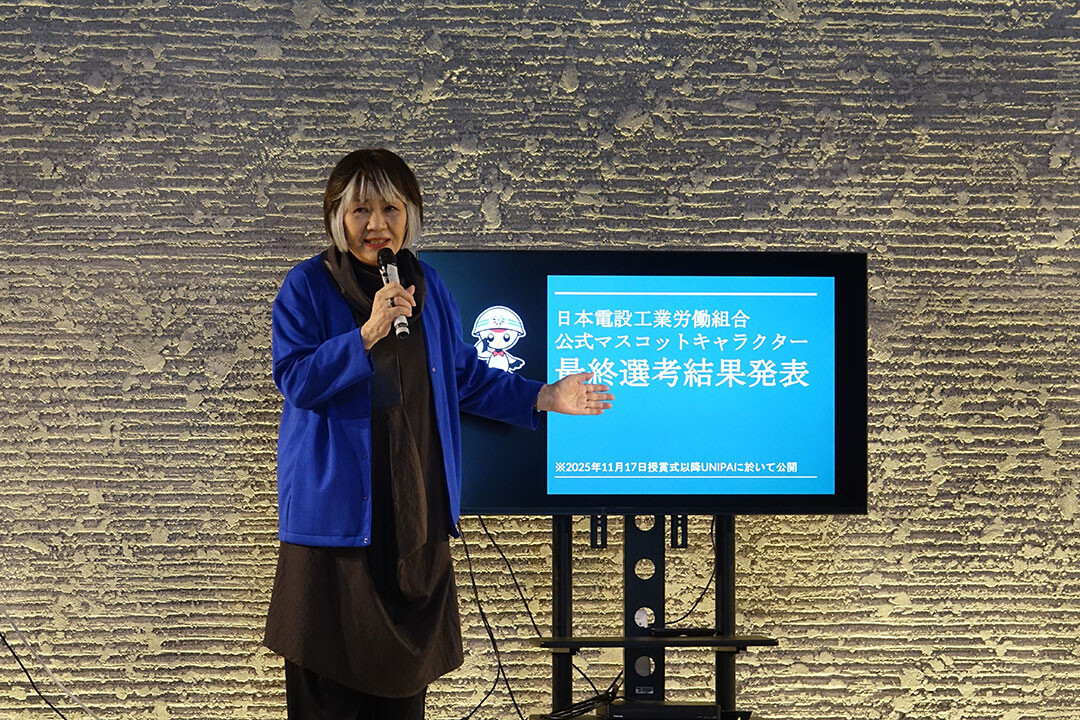 開催にあたっては、キャラクター造形学科教授の有馬啓太郎先生が、学生への説明、作品募集などさまざまな調整をしてくださり、学生からは総数92作品の応募がありました。応募作品は日本電設工業労働組合の組合員投票で厳正なる審査の結果、最優秀賞にはキャラクター造形学科ゲームコース3年生 吉井輝さんの作品が公式マスコットキャラクターに選ばれました。