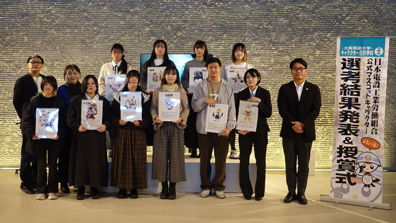2025年11月17日キャラクター造形学科校舎で、日本電設工業労働組合 公式マスコットキャラクターコンペティションの表彰式が執り行われました。