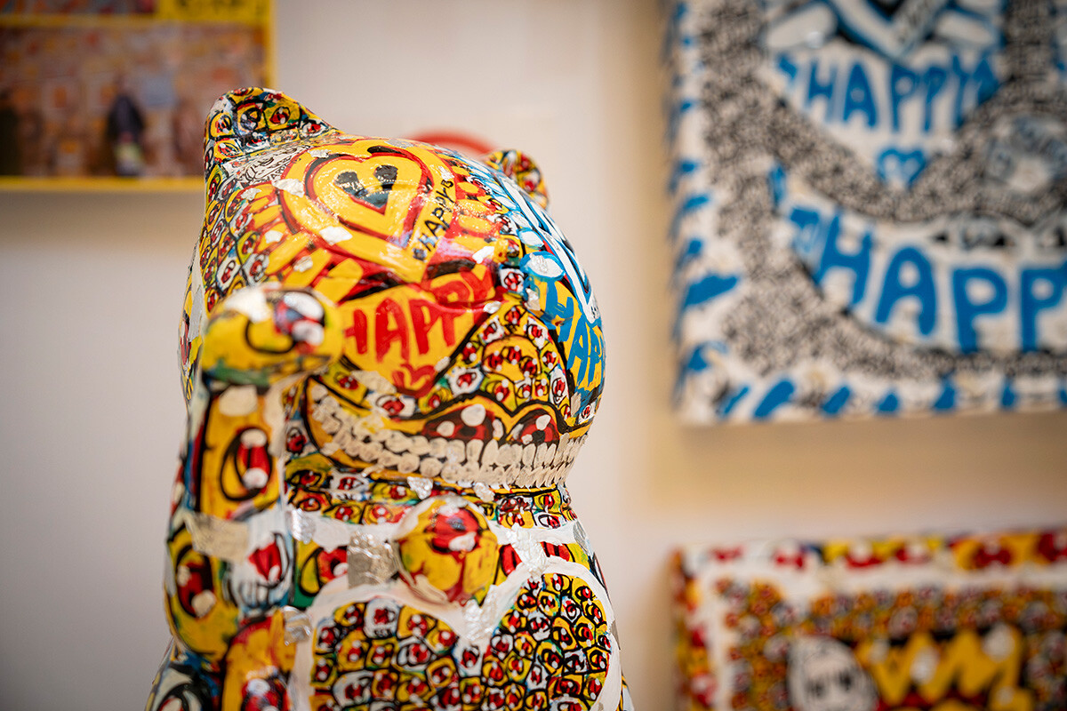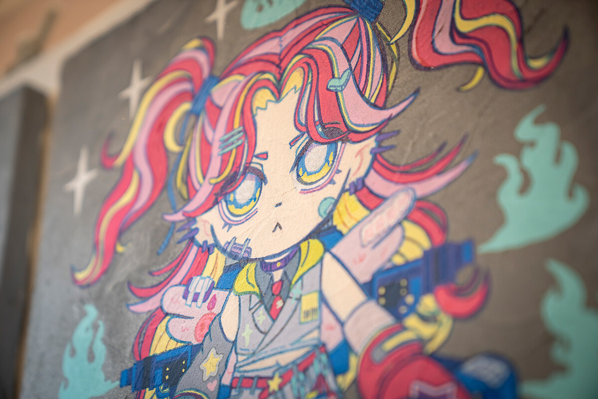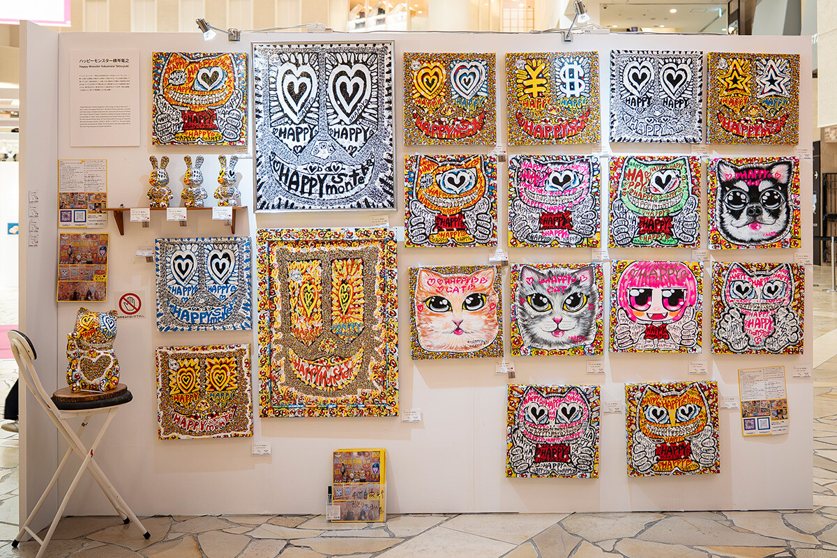 今回の出展で「いつか百貨店で展示したい」という夢が叶いました。私自身もよく訪れるうめだ阪急で作品を発表できて、本当に感慨深いです。私の作品は、ネガティブな感情をテーマにしながらも、見る人が明るい気持ちになれるようなポップな色彩を追求しており、今回は女の子やモンスターをモチーフに、平面作品と立体作品を展示しました。立体作品には3Dプリンターを活用。技術的な調整が難しく、何度も失敗しながら試行錯誤して制作したものです。絵はシンプルな線と色で構成していますが、外壁のようなテクスチャーの下地を塗り、デジタル表現とは異なる質感や存在感を表現するなど、一点もの作品としての付加価値を高める工夫も取り入れました。