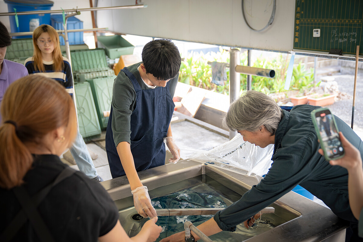 2度、3度と染めを重ねるごとに生まれる藍の色合いの変化や美しいグラデーションも実感