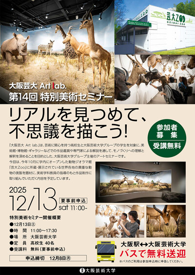 大阪芸術大学放送学科、大阪芸術大学短期大学部メディア・芸術学科の各声優コースでは「声優」という職業の可能性の扉を開け、プロの指導者とともに学生たちの熱い学びが広がっています。学生たちの日頃の学びの成果を発揮する朗読劇やパフォーマンスをはじめ、人気アニメや外国映画の吹き替え、バラエティ番組のナレーションなどで活躍する教員や卒業生を交えたトークセッションを開催します。さらに放送学科客員教授の野沢雅子先生から届いた熱いメッセージビデオも公開。声の未来について知見を広げる、またとない機会にぜひお越しください。